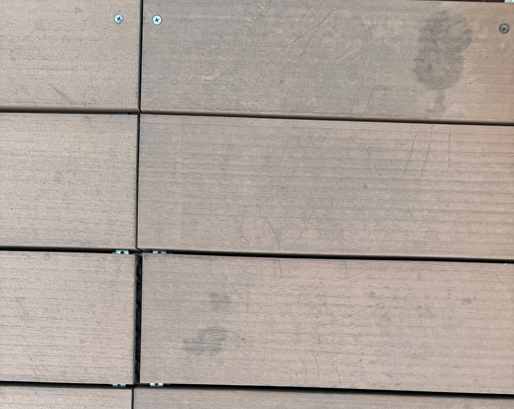 人工木はメンテナンス性に優れますが、風合いは天然木に劣り、汚れに弱く熱くなります。